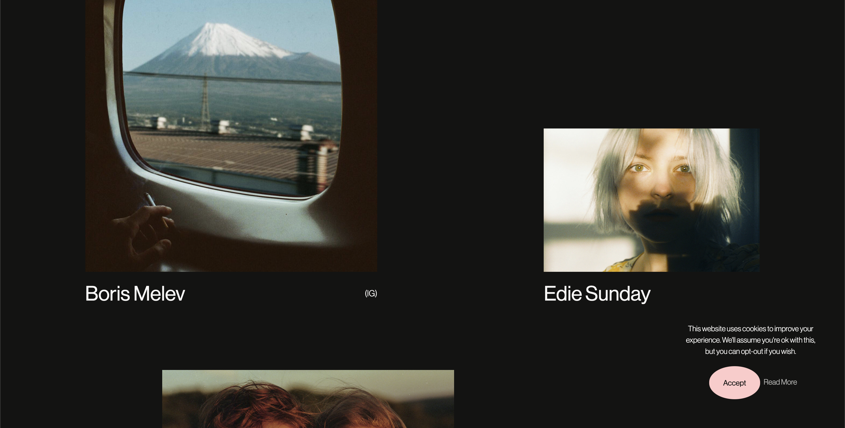 또한 Abbotsford Convent 사이트에서는 아치형태의 이미지와 더불어 앞서 이야기한 노이즈 텍스처를 웹사이트의 백그라운드 그래픽으로 설정하여 마치 오래된 브라운관 TV에서 재생되고 있는 이미지처럼 약간의 움직임으로 레트로 감성과 함께 재미를 더하고 있습니다.